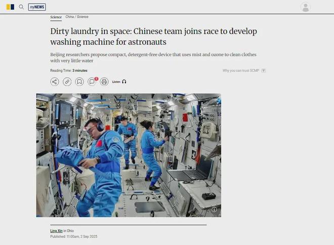 这不,来自港媒公开指出:太空中的脏衣服:中国团队加入为航天员开发洗衣机的竞赛。