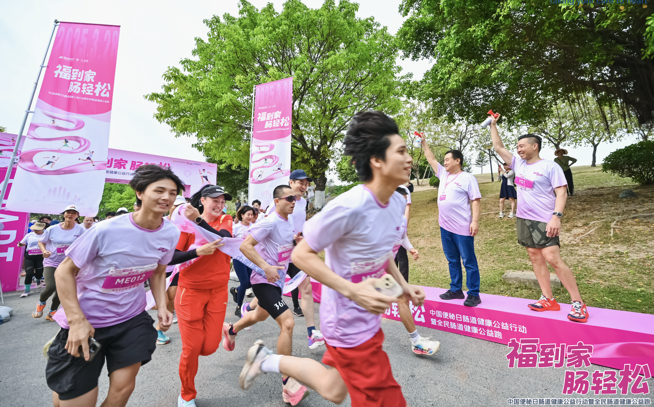 3月28日的广州白云湖公园,春潮与健康热潮在此交汇。随着中国女子马拉松纪录保持者孙英杰带领300名参赛者冲出起跑线福到家 肠轻松”中国便秘日公益行动以充满活力的方式拉开帷幕。波光粼粼的湖面映照着跃动的身影,4000米环湖赛道成为传播肠道健康理念的生动课堂。